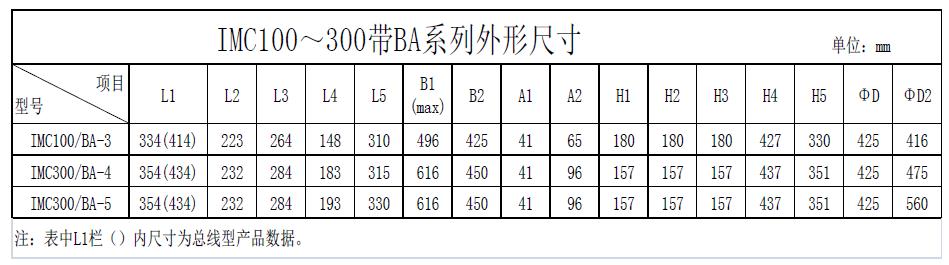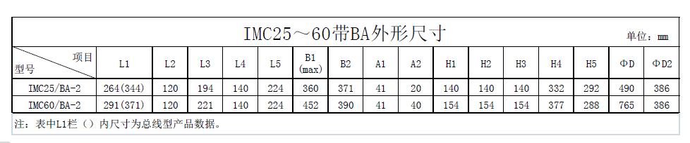 IMC/BA標(biāo)準(zhǔn)技術(shù)參數(shù)表